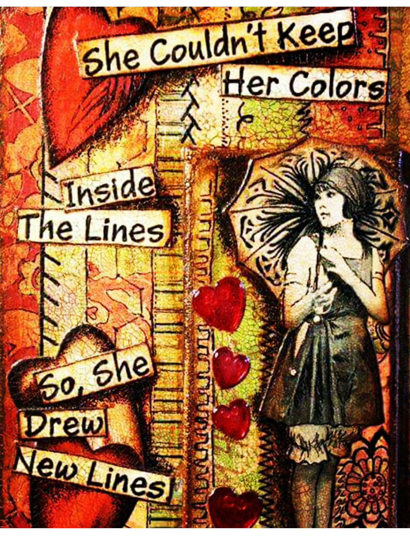 I always wanted to fit in, always feeling like I stood out. Never truly understanding that the lines I was growing up in where not mine to stay within. I opted to say “oh I’m just not that creative or artistic like others” oh I pushed the envelope several times but just enough to touch the edges a bit and if I was spoken to or judged I would “erase the mistake” instead of venturing out to dream, do and create. That changed as I got older and rediscovered hidden talents and came face to face with one of the very things that makes me …Me. I’m not like anyone else and when I can’t fit into the lines I make new ones. I found a picture that reminds me of that.